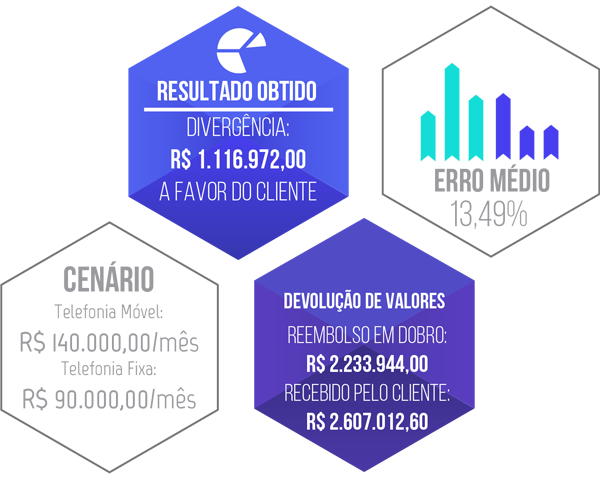 • Divergência: R$ 1.116.972,00 a favor do cliente, representando um erro médio de 13,49%